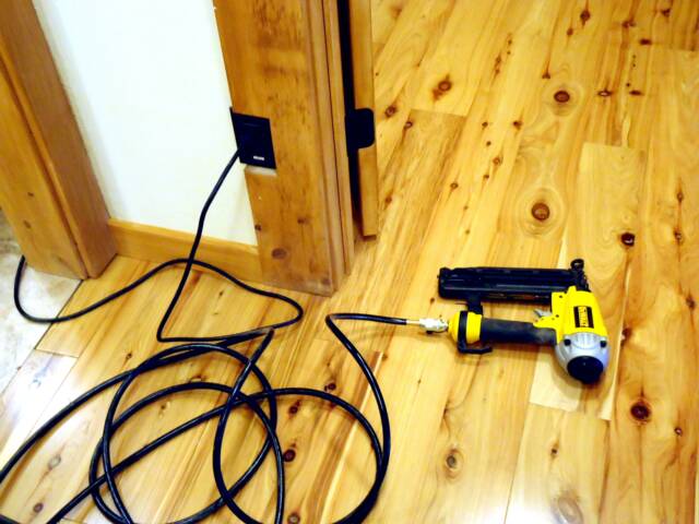 Day 90 - Finish carpenters onsite. Plumbers onsite; working on trimout. Australian Cypress hardwood flooring delivered, opened all box's and will let acclimate for five days before installation. Insulation Contractors onsite; sprayed Icynene under complete floor system, 100% complete.