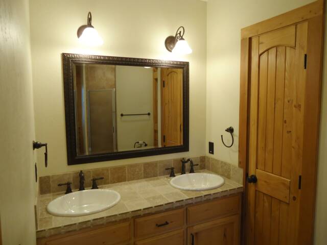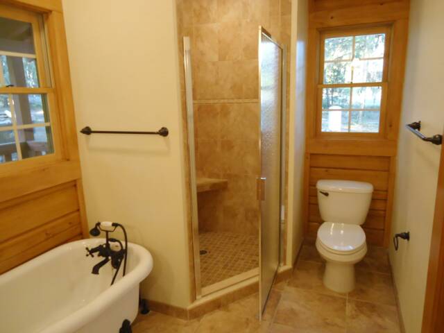 Day 84 - Finish carpenters onsite installing interior window/door trim, wainscot and chair rails. Tile crew onsite. Glass contractor onsite getting measurements to fabricate shower door. Cabinet makers onsite installing hardware; cabinets 100%.