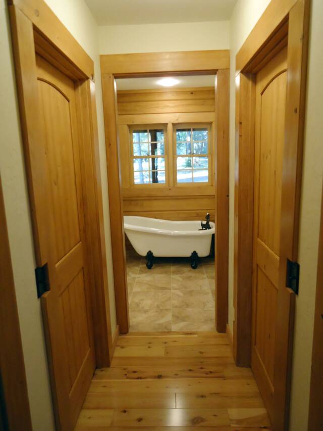 Day 85 - Finish carpenters onsite installing interior doors and trimout. Tile crew onsite. Visited Building Dept. and paid year end tax's to release power. Stone crew back onsite; owners ok' d changeorder to wrap foundation and piers with stone.